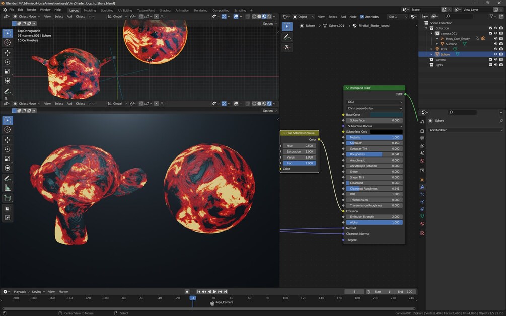 Procedural Lava Fire animated Shader blend file made within blender 3.2